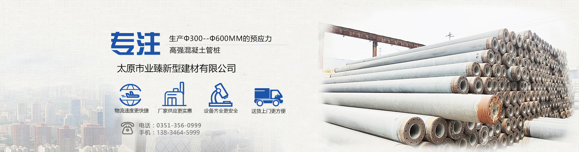 業(yè)臻,專注預(yù)應(yīng)力管樁、水泥排水管、方樁、混凝土加氣磚等建筑材料研發(fā)生產(chǎn),質(zhì)優(yōu)價(jià)廉,值得信賴!